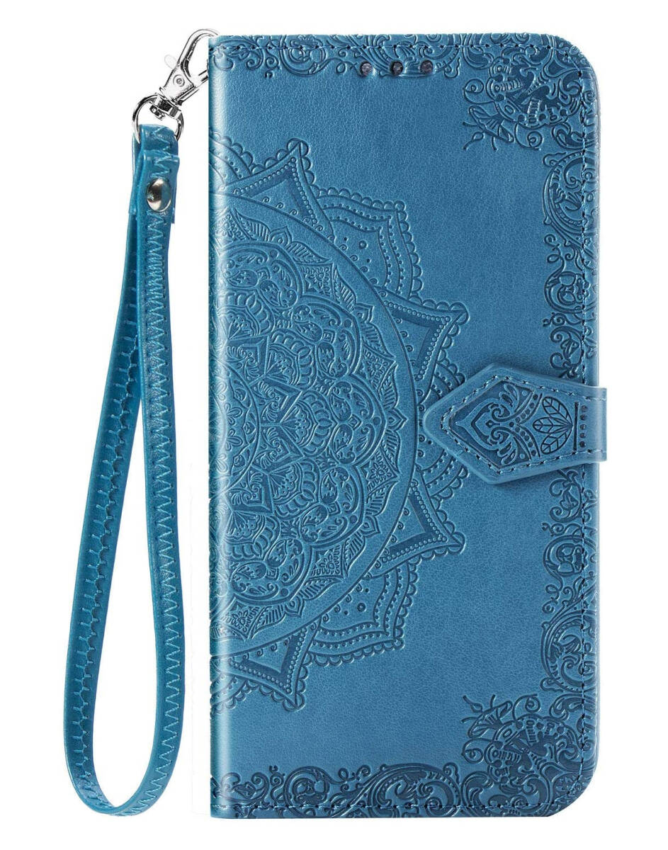> 京セラ BASIO3 KYV43 手帳型 花柄模様 光沢感 耐衝撃 防塵 耐久性 ブルー 裏側でも磁石 ay338