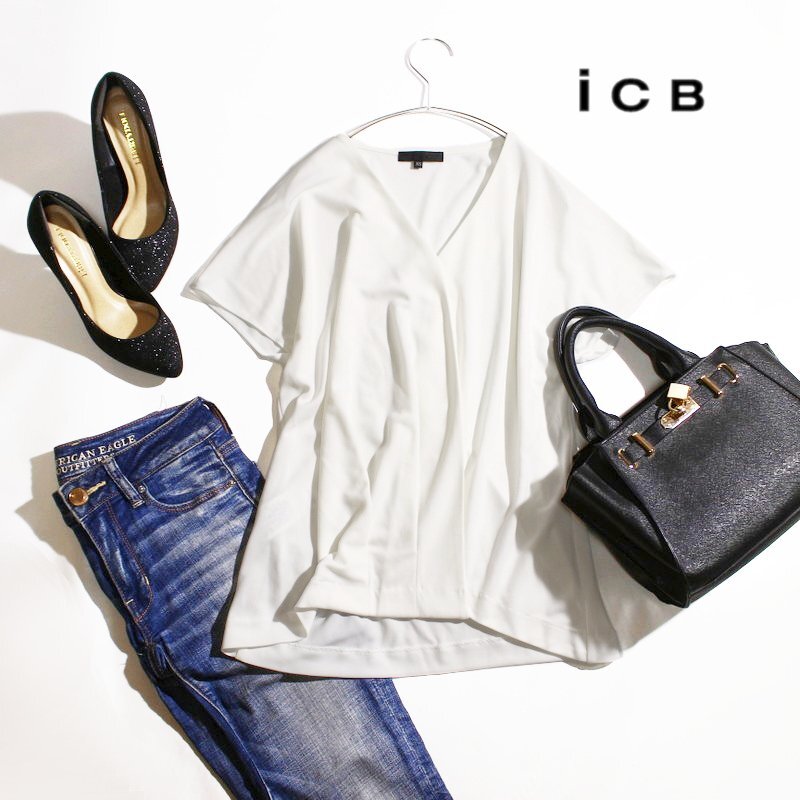 > 美品 ICB アイシービー 株) オンワード樫山 夏 綺麗め ミセス ジャージ― フレンチスリーブ 半袖 カットソー XS ホワイト 白 オフィス