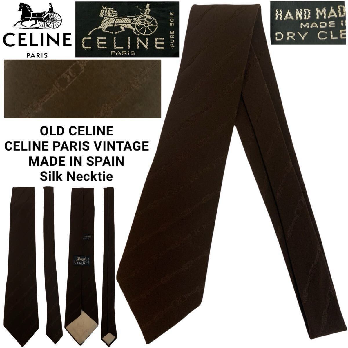 - OLD CELINE オールドセリーヌCELINE PARIS VINTAGE セリーヌ パリス ヴィンテージ MADE IN SPAIN 柄 シルクネクタイ D.ブラウン アーカイブ
