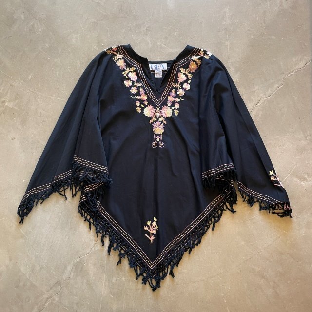 > 【Ladies Free】BFA CLASSICS 刺繍 コットン ポンチョ ブラウス ブラック 黒■ビンテージ オールド レトロ アメリカ古着 レディース 花柄