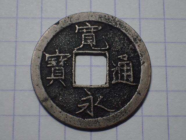 - G114-1 退永全刮去(鳥羽有来銭)帯白銅 1736年 山城国鳥羽横大路 古銭 銅銭 寛永通寶 穴銭 江戸時代