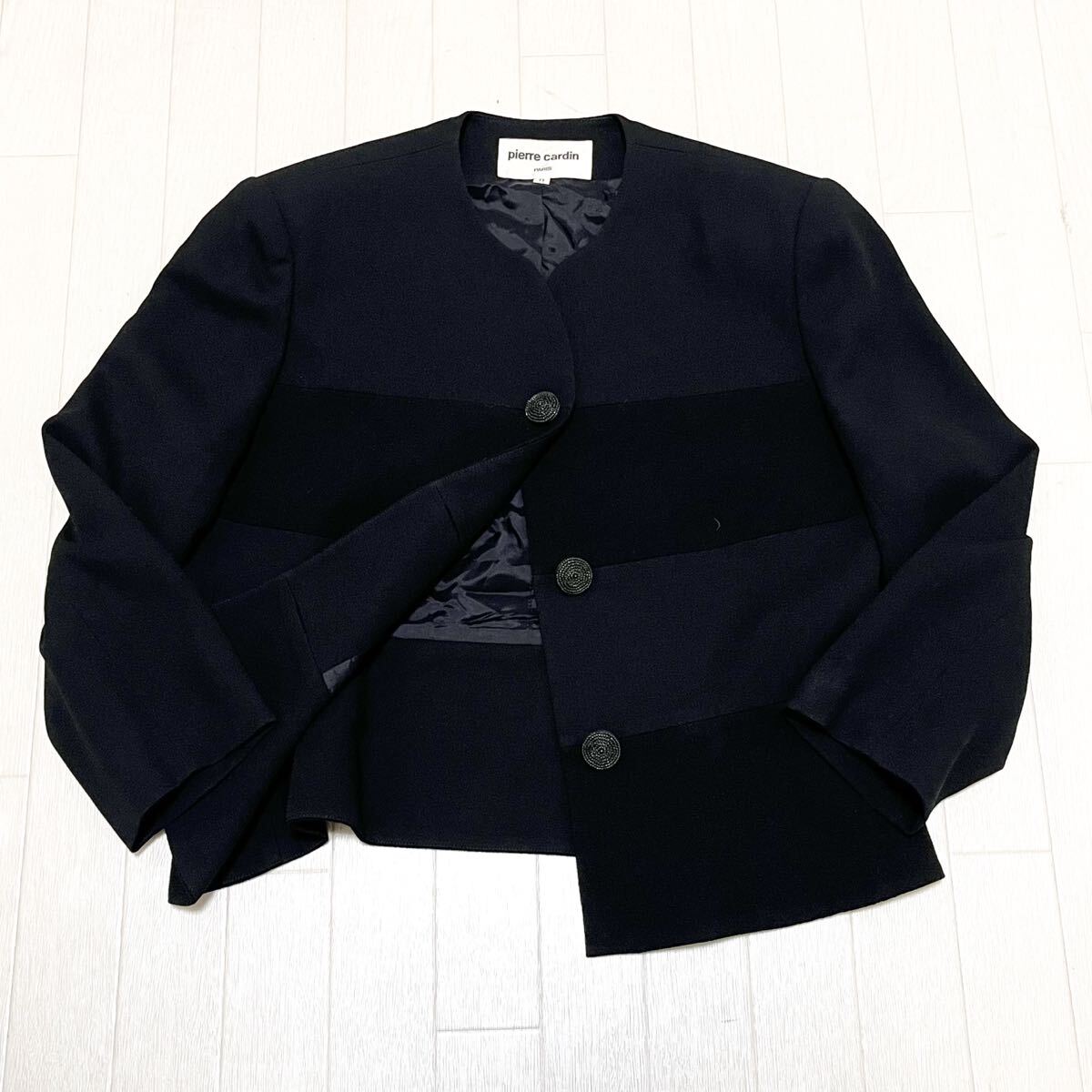 > 和805★ pierre cardin ピエールカルダン ノーカラージャケット 11 ブラック レディース 切替 日本製