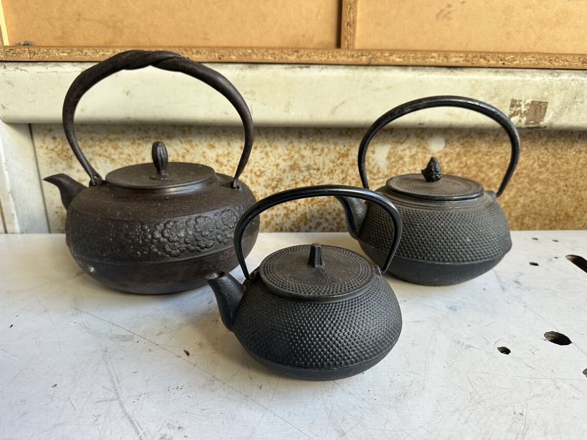 - (M1) 南部鉄器 鉄瓶 茶道具 繁栄堂 守亘 岩鋳など まとめて3点 現状中古品