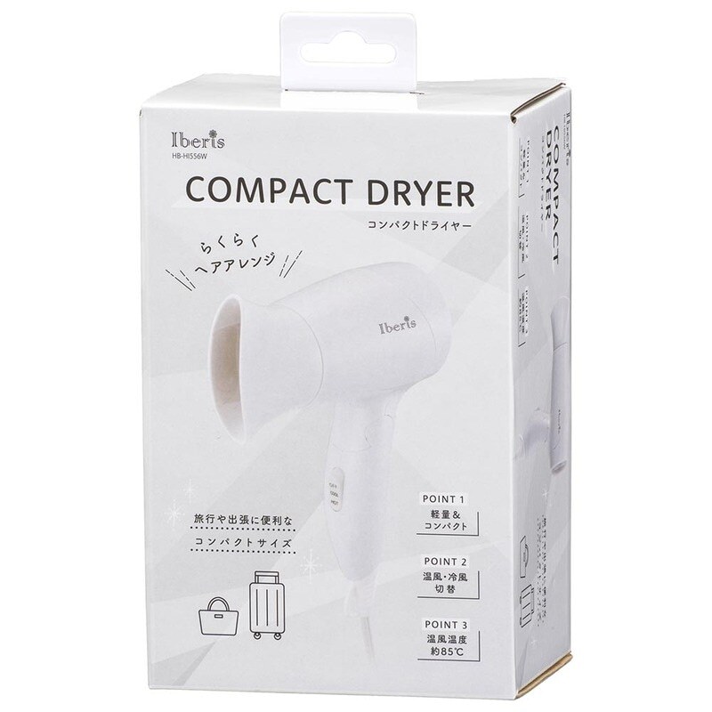 > オーム電機 Iberis コンパクト ドライヤー HB-HI556W 00-5699 (2025年製と本体シールに記載 Lot)7月購入 白 折りたたみ