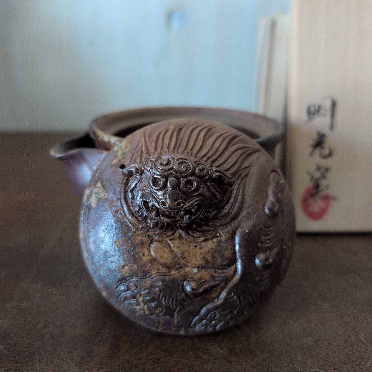 - 備前焼 明光窯 獅子 細工物 宝瓶 共箱 茶道具 茶器