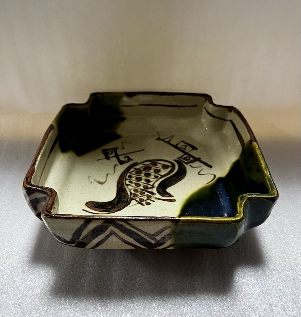 - 未使用 新品 織部焼 鉄絵 変形四角鉢 変形 鉢 織部 向付 美濃 菓子器 珍品 希少 骨董 時代 和陶器 織部 手描き 裏印