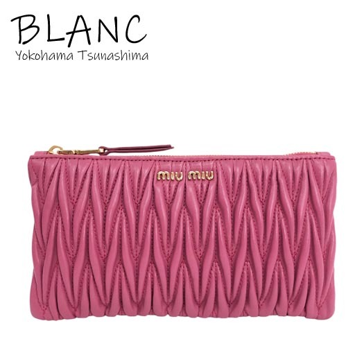 > ミュウミュウ マテラッセ レザーポーチ ナッパレザー PEONIA ピンク 5MB003 miu miu 横浜BLANC