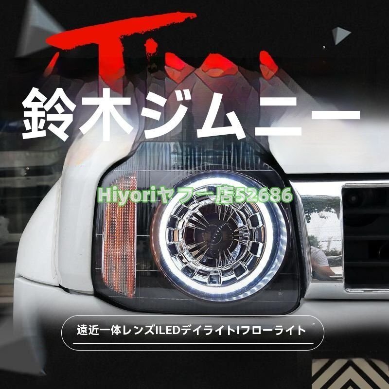 - スズキ ジムニー用 LEDヘッドライトユニット 流れるウインカー搭載 イカリング付き 高輝度仕様