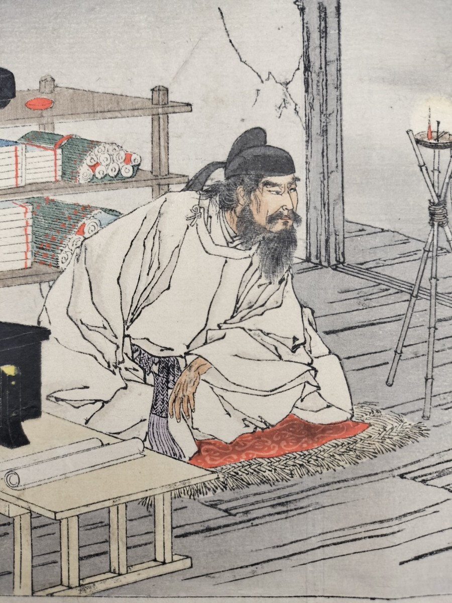 - 明治期/真作 小林永興「宇佐の御使 恩賜の御衣」本物浮世絵木版画 武者絵 錦絵 中判