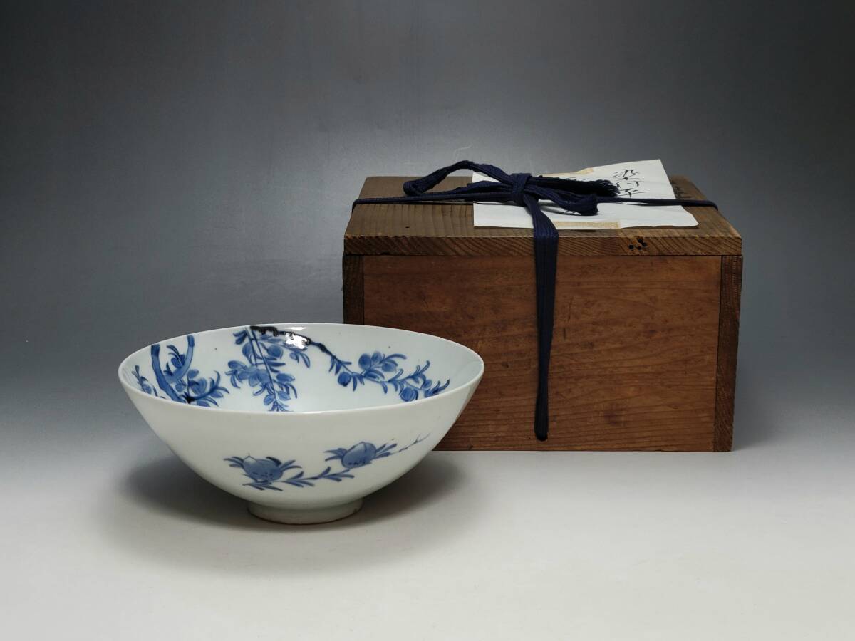 > ● 幅 約 14.6cm 薄く製作された高級磁器で 女人の姿が美しく描かれた 時代 染付 平戸焼 西王母 茶碗・茶碗 茶道具 煎茶道具 茶器 ●