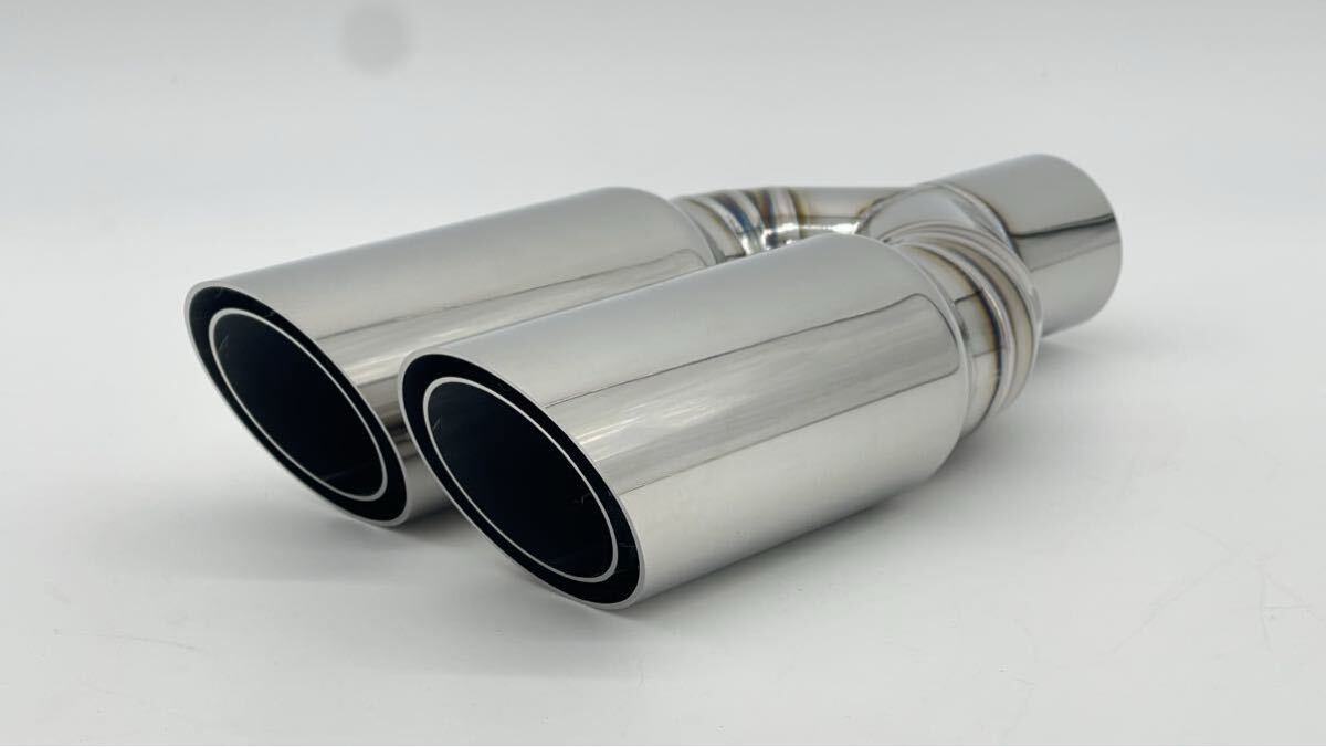 > ☆エビ管二重構造デュアルマフラー出口外パイプ径65Φ内パイプ径50.8φW 30°スラッシュカット入口50.8φ サイズ寸法等変更可能