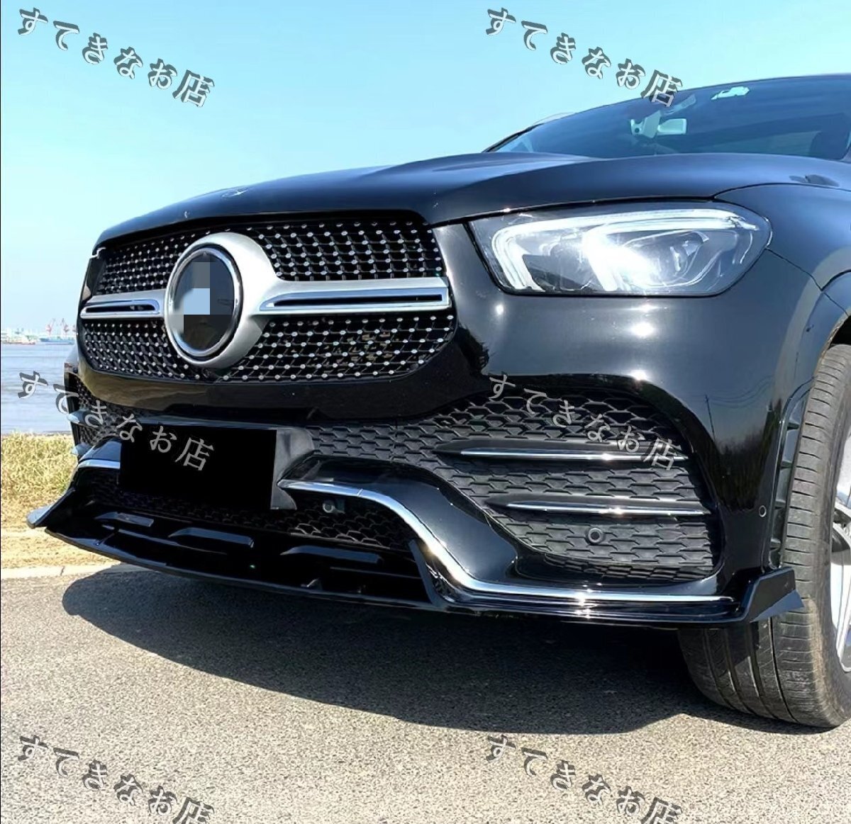 - 送料無料 ABS製 カーボン調・艶出しブラック ベンツ W167 C167 2019年~ AMG フロントバンパーディフューザー 三段式1セット