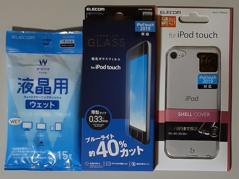 - 6361 未使用未開封 ELECOM AVA-T17PVKCR SHELL COVER 極 / AVA-T19FLGGBL 強化ガラスフィルム iPod touch 2019対応 / 液晶ウェットティシュ