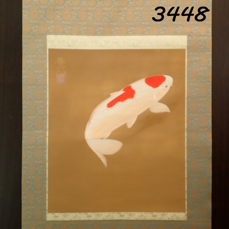 - 【真作】●FK-3448 大野藤三郎「鯉」紙本 肉筆/太巻掛軸 20250730