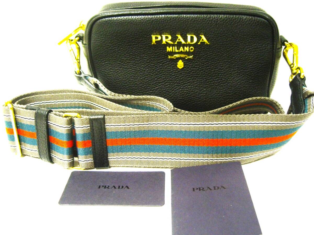 - 【東京 谷中 質屋おぢさん】未使用 本革 プラダPRADA人気のななめがけ取り外し可能ショルダー1BH096