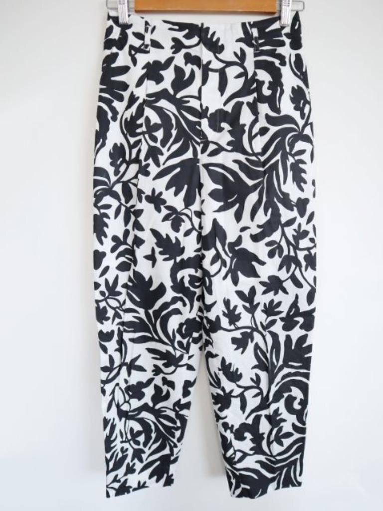 > 【送料込】INDIVI インディヴィ[洗える]ボタニカルテーパードパンツ Mサイズ オフホワイト×ブラック おしゃれ お出掛け 6455752
