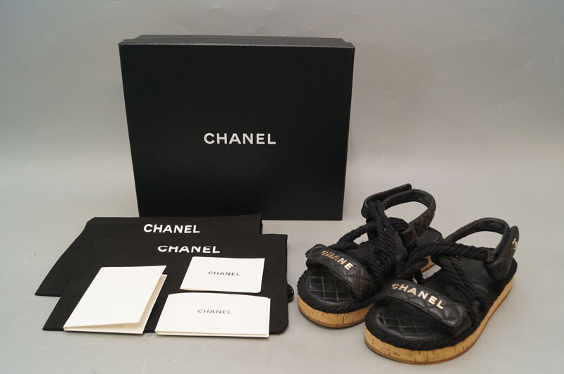 - yd28-CHANEL シャネル サンダル 36 ブラック G34602 マトラッセ ココマーク レザー ゴールド金具 保存袋付 箱付 スポーツ 靴 シューズ