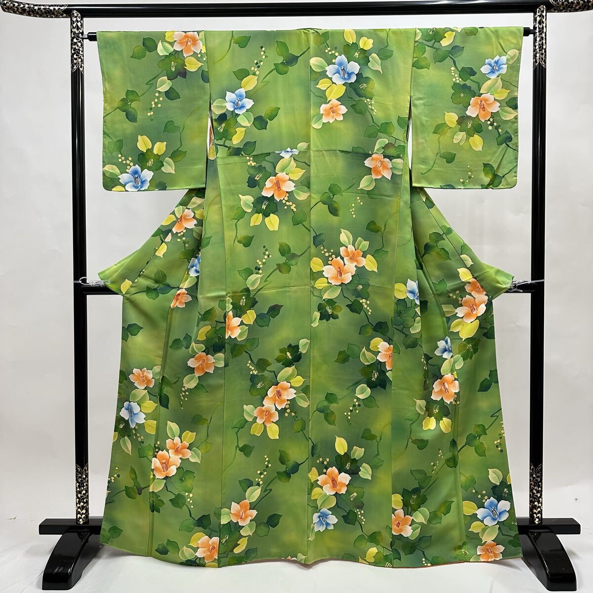 - 【七福】c707 正絹 小紋 地模様 織花 暗文 袷 着物 仕立て上がり 逸品 身丈 約163cm 裄 約 64cm