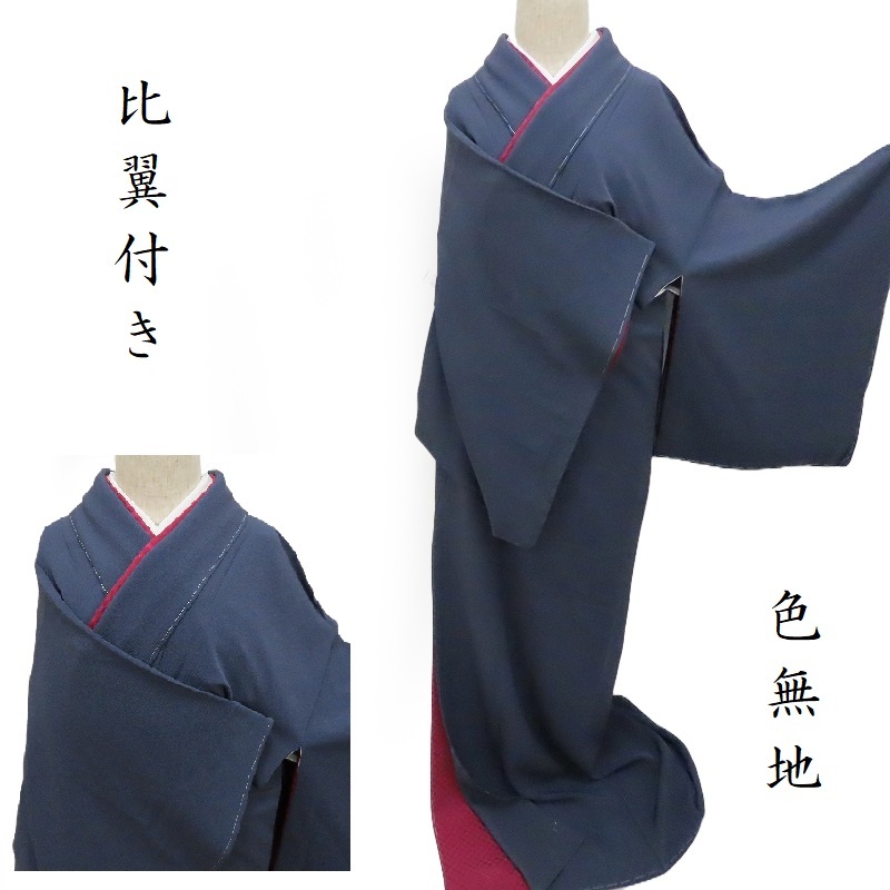 > Club藤★色無地 比翼付き 正装 フォーマル 藍鉄色 お茶席 茶道着物 御仕立上りガード加工済(3444)