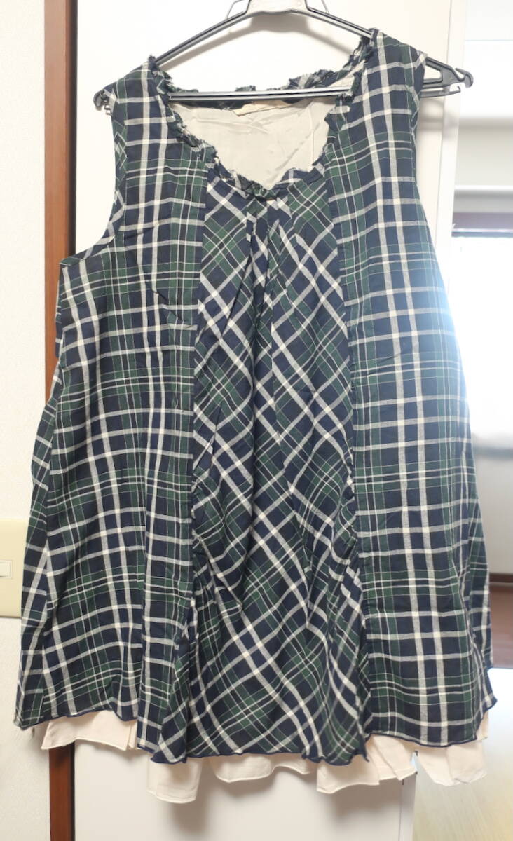 - Marble Choice/マーブルチョイス★グリーン系チェック チュニック【L】未使用 裾フリル