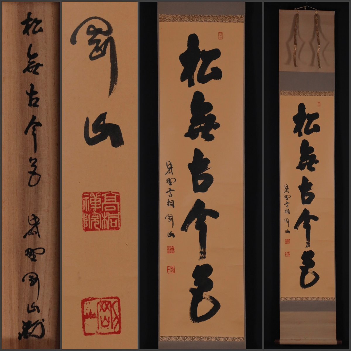 - 【模写】吉】12701 剛山宗忠 書「松無古今色」 共箱 臨済宗 大徳寺 高桐院 久田流有栖川系 仏教 茶掛け 茶道具 禅語 掛軸 掛け軸 骨董品
