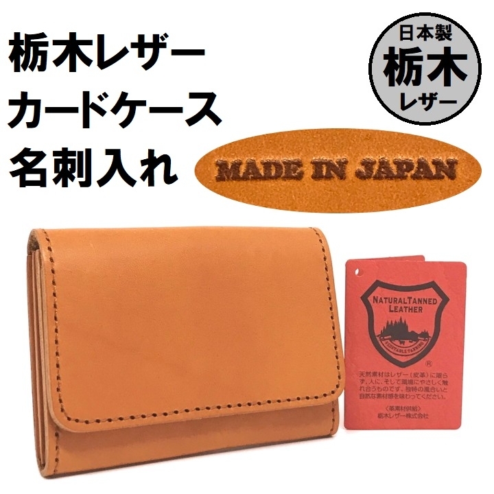 > ■未使用■栃木レザー 牛革 名刺入れ カードケース オレンジみのあるキャメルブラウン 本革 レザー メンズ レディース 日本製 カード入れL5