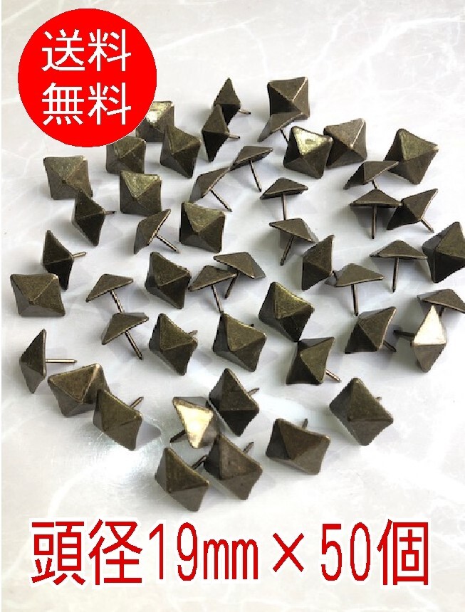 - 【角頭径19mm×50個】四角 トキン鋲 装飾釘 ブロンズ 飾り鋲 ヴィンテージ 飾り釘 アンティーク 画鋲 椅子鋲 太鼓鋲