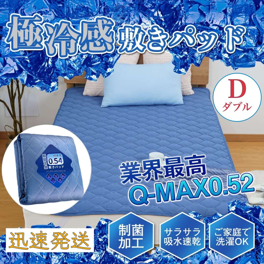 - 冷感 敷きパッド 高品質 D ダブル 接触冷感 ベッドパッド ひんやり マット 夏用 吸湿速乾 抗菌防臭 洗える 140x200cm