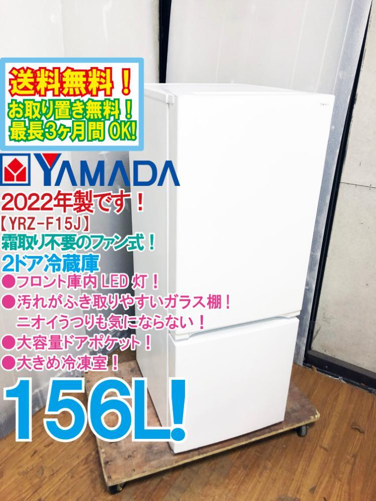 > ◆送料無料★2022年製★ 中古★YAMADA 156L フロント庫内LED灯★大容量ドアポケット!2ドア冷蔵庫【◆YRZ-F15J】◆B3Y