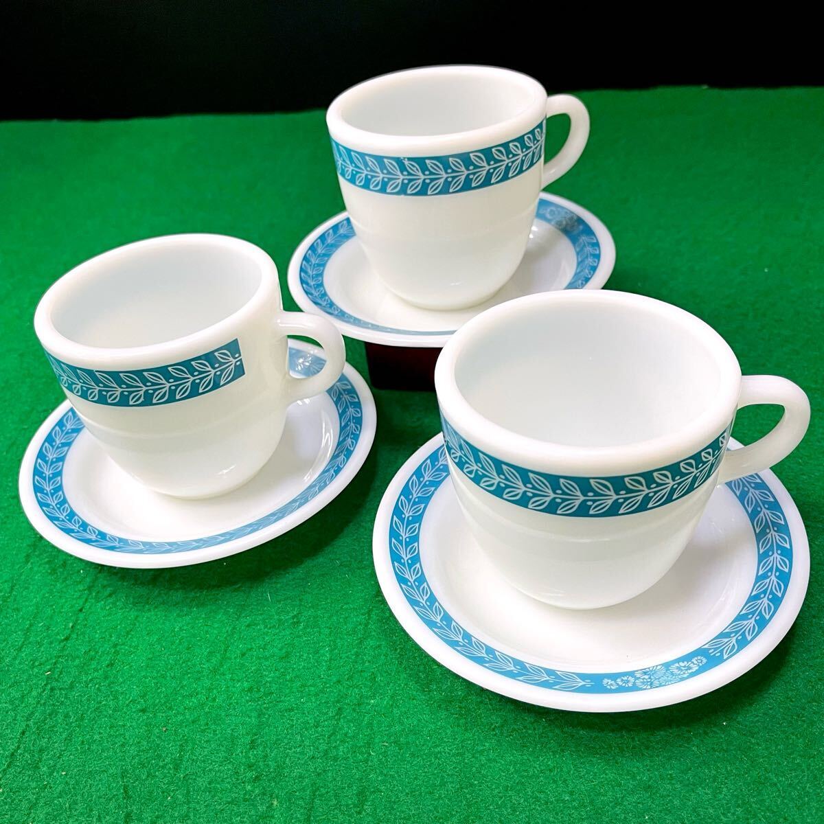 - ★☆現状渡し PYREX Tableware by CORNING MADE IN U.S.A カップ&ソーサー 3客セット 説明文必読 食器/洋食器/アンティーク