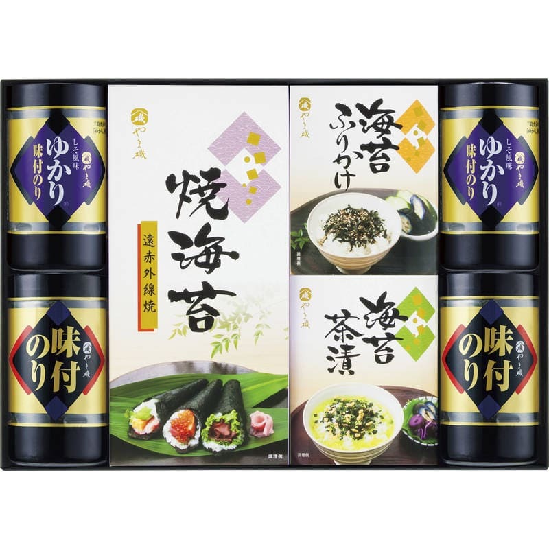 ▼▼▼▼▼▼注意事項▼▼▼▼▼▼・送料込み(送料800円が商品価格に含まれています) 一部地域では追加送料あり。・お取り寄せ商品です。弊社にて手配後、メーカー・卸業者からの直送になります。・まれにメーカー欠品、出荷遅延等が発生致します。問題発生時は別途メールにてご連絡致します。・配送方法の指定、日時指定、置き配、ギフト対応、他商品との同梱配送などは対応できません。・まとめ買いや複数購入の場合は通常より発送に時間が掛かる場合がございます・複数個口の場合、2階以上への搬入ができない場合があります。(その場合は1階での受け渡しとなります)・大型連休、お盆、年末年始などは発送をお休みさせていただく場合がございます・メーカー都合により、パッケージは予告なく変更される場合がございます・梱包用のダンボールはリサイクル品を使用させていただきます。・注文に関するご連絡(注文確定通知・発送通知など)はメールでご案内させていただきます※商品ページの内容について、少しでもご不明な点などがございましたら購入前に一度ご連絡ください▲▲▲▲▲▲注意事項▲▲▲▲▲▲〇商品説明口どけのよい海苔に有機丸大豆醤油使用の調味たれで味付けした旨味のある味付海苔、三島食品の「ゆかり」を使用した調味たれで味付けした美味しくさわやかな赤しそ風味の味付海苔を中心に、ふりかけ、茶漬けなどをセットしたバラエティギフトです。〇商品仕様【パッケージサイズ】380×73×275mm【内容】味付のり:8切24枚・しそ風味のり:8切24枚×各2、焼のり:2切6枚2袋詰・のり茶漬け:(5.5g×3袋)・のりふりかけ:(5g×3袋)×各1【アレルゲン】卵・小麦・乳・えび【生産国】日本【パッケージ形態】化粧箱入【保存方法】常温【賞味期限】製造日より約450日(出典:やま磯)