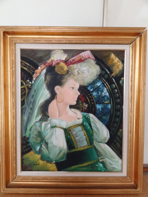 - 【真作】韓国人画家 大韓民国美術研究会員 ノウ・クヮン 盧桄 美人画 貴婦人像 F20号