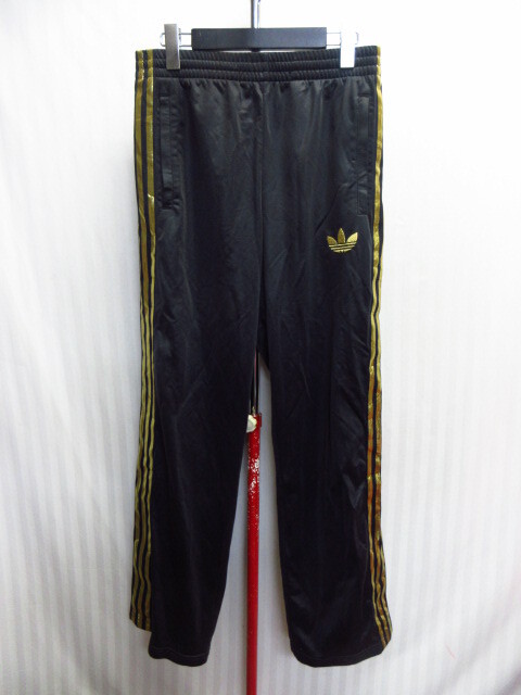 > アディダス トレフォイル刺繍ジャージパンツ メンズM 黒ゴールド 三つ葉ロゴ刺繍トラックパンツ トレーニングパンツ イージーパンツ03254