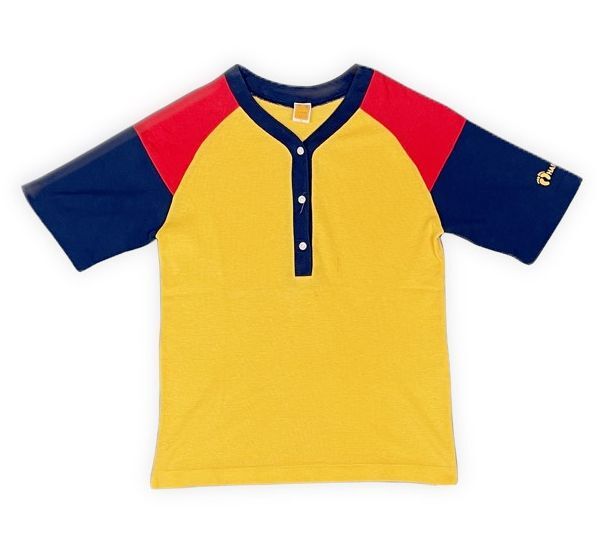 - 70's ハンテン HANG TEN RN862468 オールドサーフ ビンテージ Tシャツ ヘンリー ワッフル マルチカラー M [la-1364]