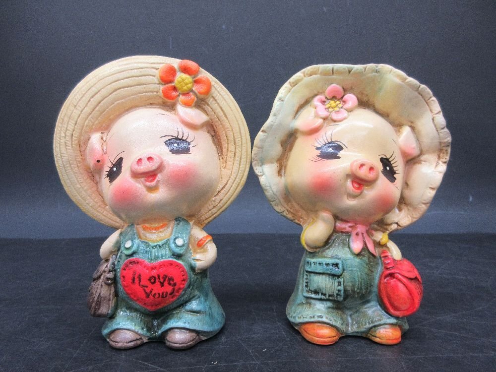 - [ZEROnet] 昭和レトロ キューティーフレンド CUTEYFRIEND ブタ 子豚 日本製 JAPAN 貯金箱 陶器製 陶器人形 置物 当時物 ×X78-04