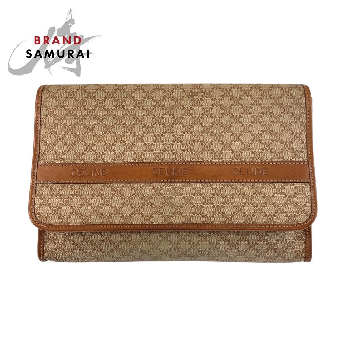 > CELINE セリーヌ マカダム ブラウン ゴールド金具 PVC/レザー M08 クラッチバッグ セカンドバッグ レディース 504843