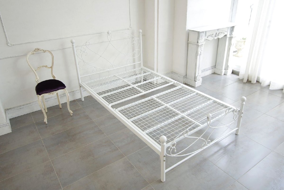 - アイアンベッド シングル ホワイト色 フレームのみ パイプベッド シングルベッド メッシュ 床