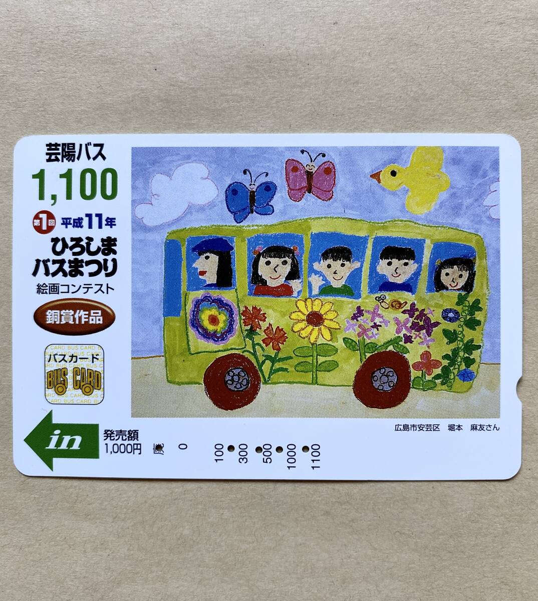 - 【使用済】 バスカード 芸陽バス 平成11年 第1回 ひろしまバスまつり 絵画コンテスト 銅賞作品