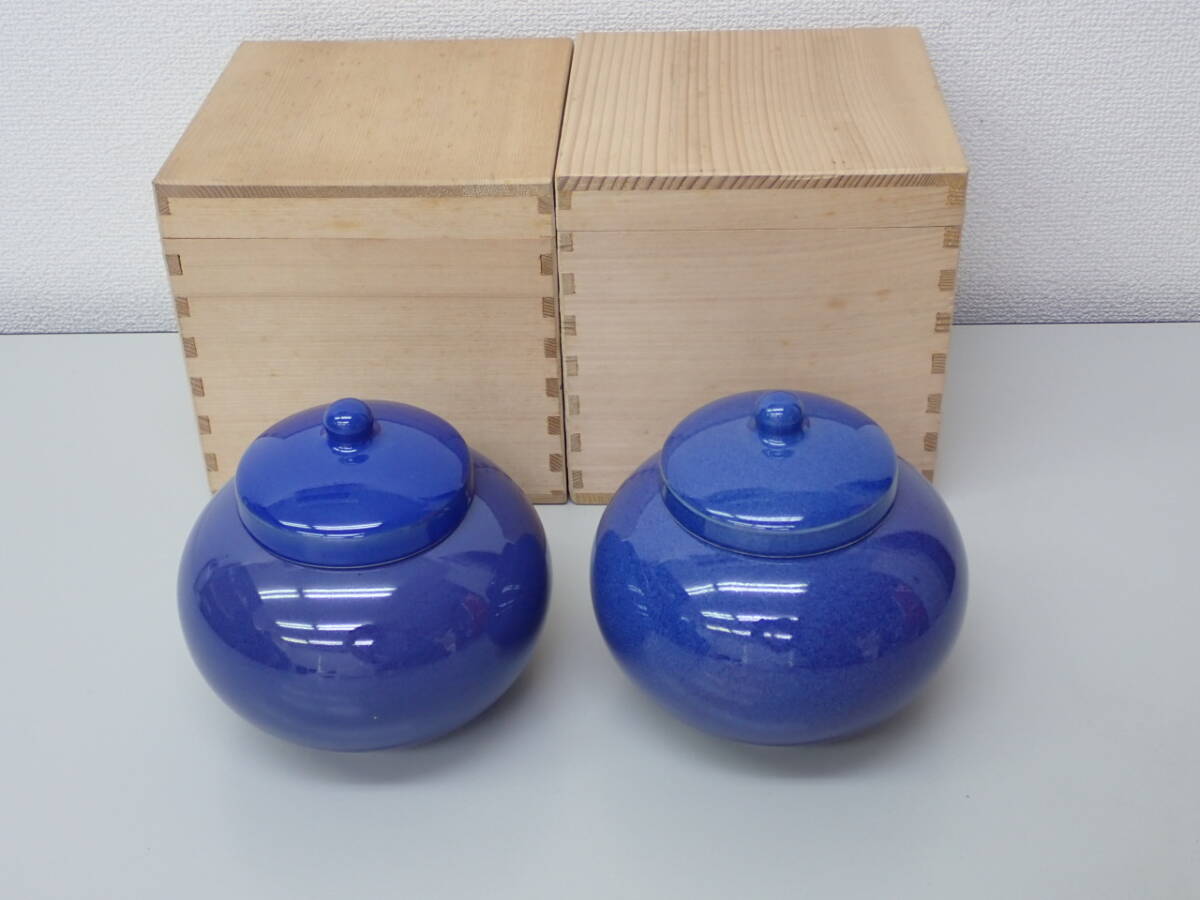 > 陶磁器-109; 有田焼 弥右衛門 茶壷・茶壺 おまとめ2個 高さ;約12×胴径;12.5×口径;5.8cm 木箱付き ★