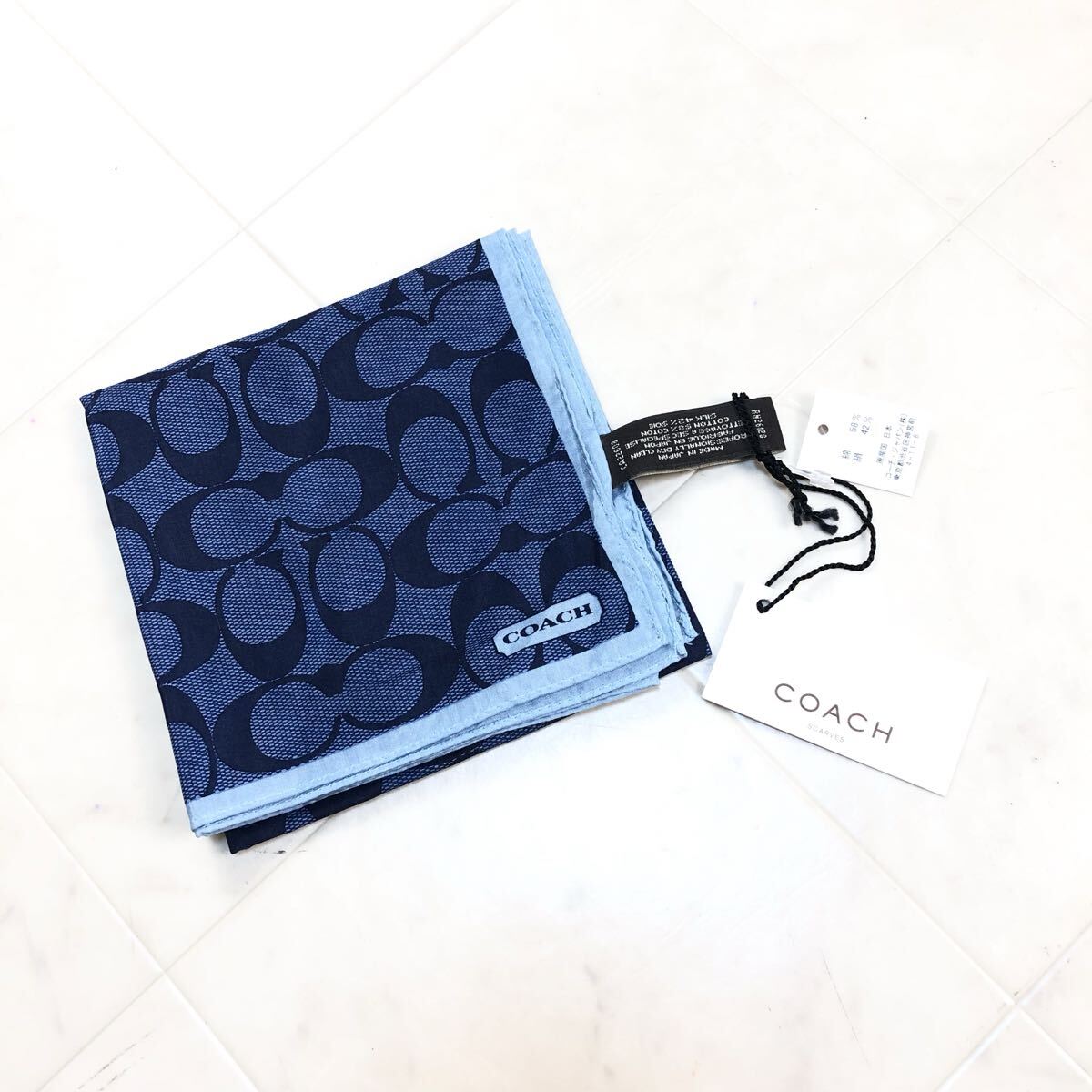 - 【送料360円】新品 COACH コーチ シルクコットンスカーフ ハンカチ シグネチャー タグ付き 未使用品 KR-11