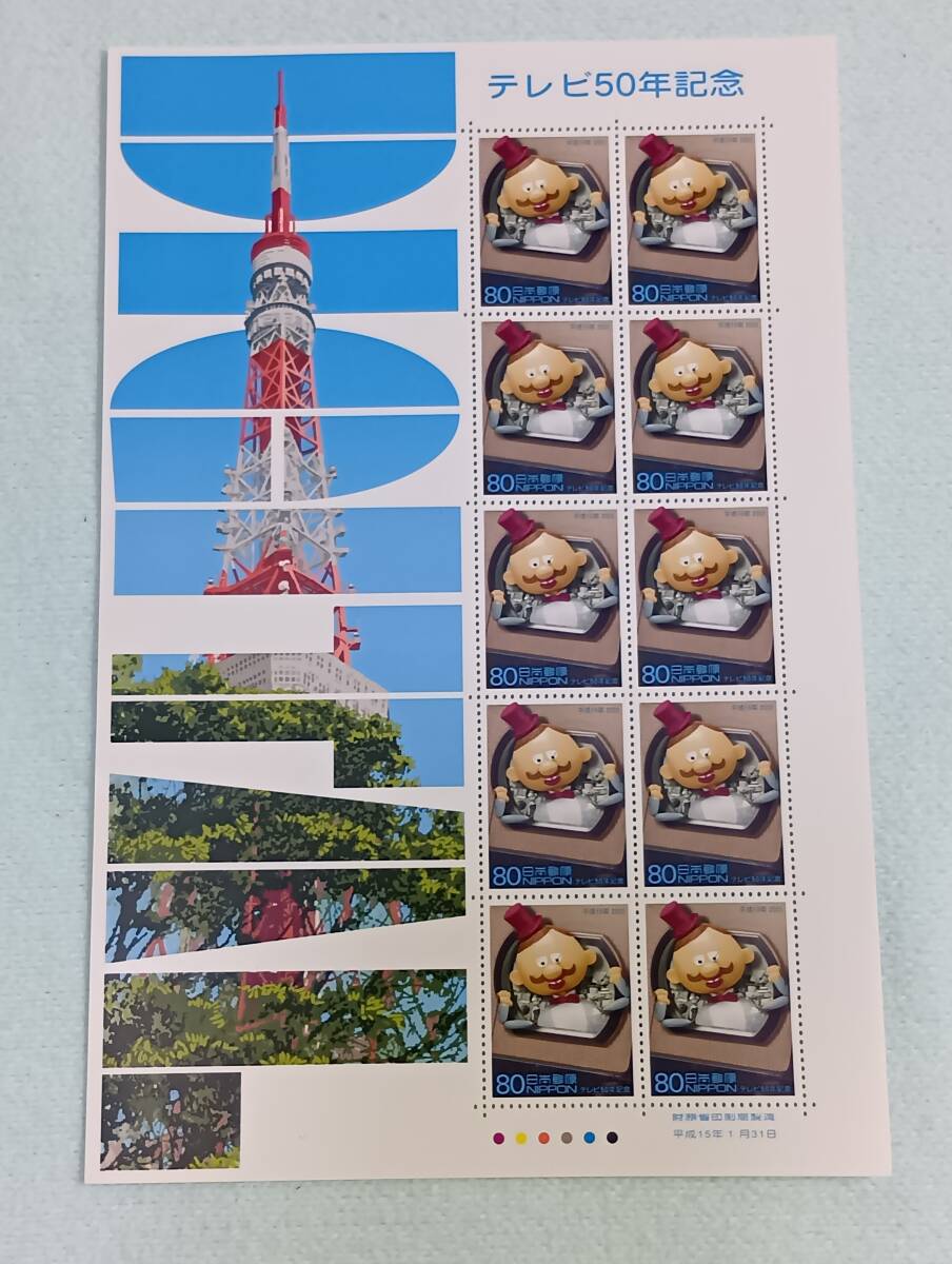 テレビ50年記念 「ひょっこりひょうたん島」の人形と 放送開始当時の家庭用テレビ H15 切手シート1枚