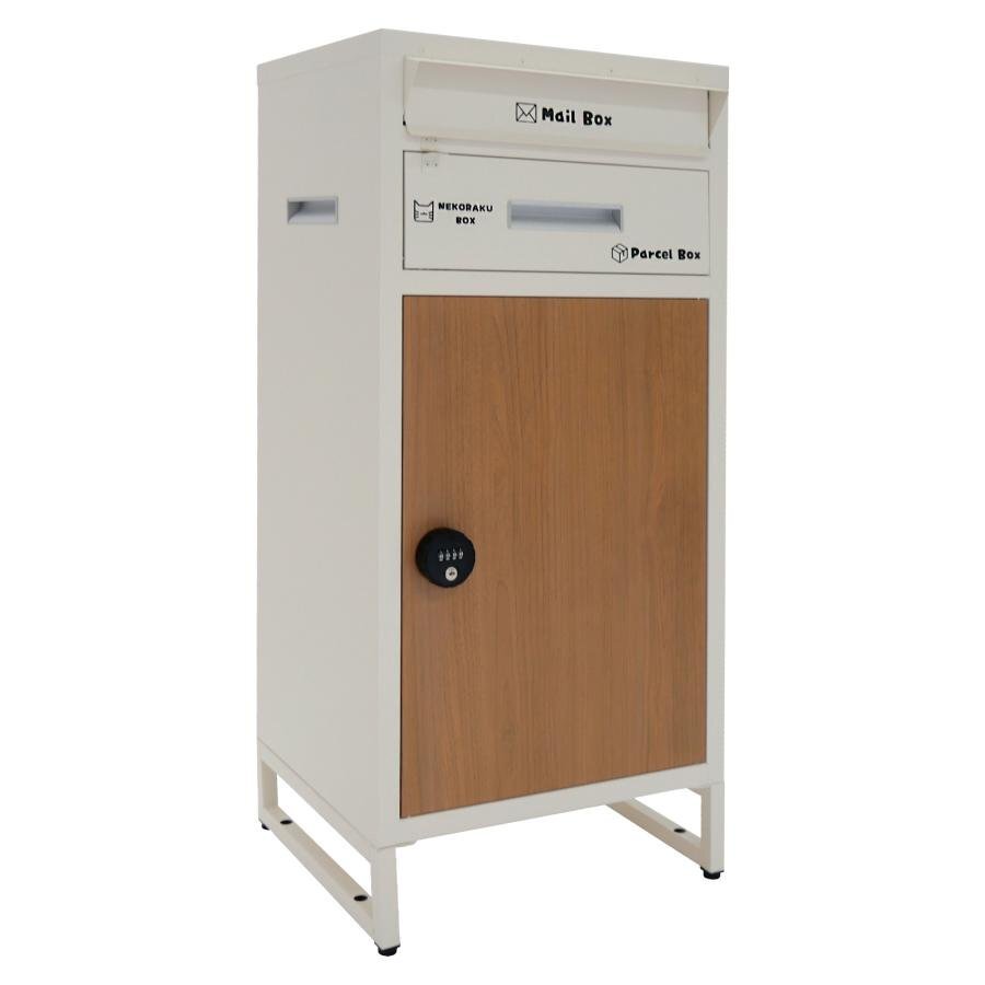 - SKK 宅配ボックス 戸建 大型 防水 屋外 2段 後付け ダイヤル式 ポスト一体型 ダイヤル鍵 両開き 大容量 置き型 アイボリー&ナチュラル