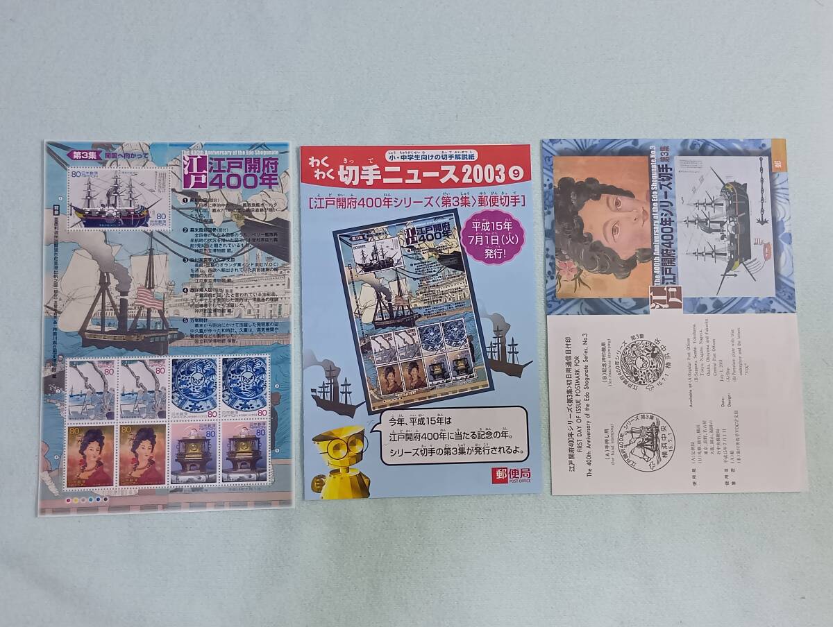 江戸開府400年 第3集 開国へ向かって H15 切手シート1枚と解説書とわくわく切手ニュース