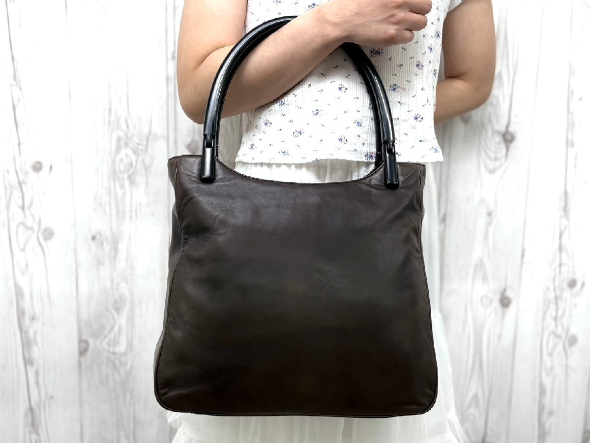 - 美品 PRADA プラダ プラハンドル ハンドバッグ ショルダーバッグ バッグ B8466 ナッパレザー 茶×黒 87802