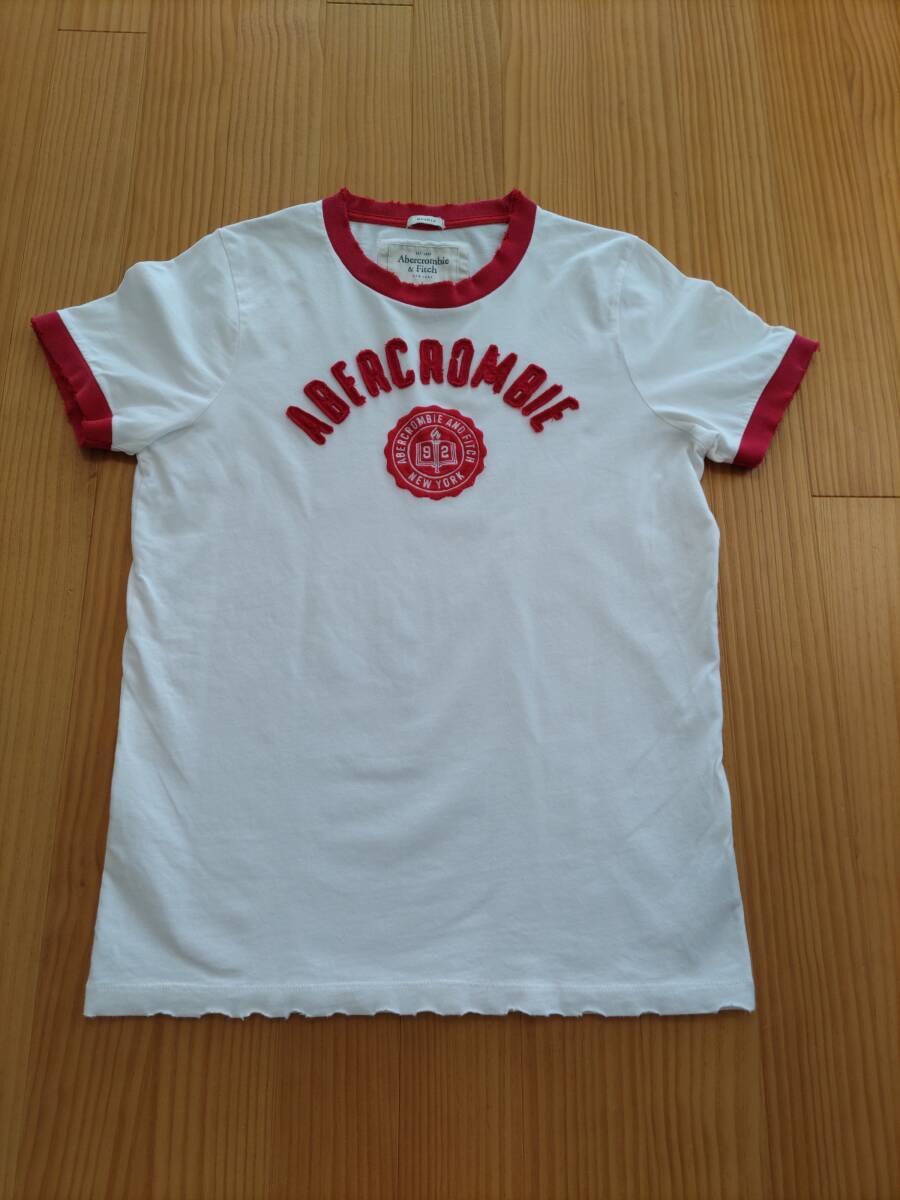 > 【着用1回】Abercrombie&Fitch/アバクロンビー&フィッチ MUSCLE ヴィンテージ加工 半袖 Tシャツ XL 綿100 白/赤