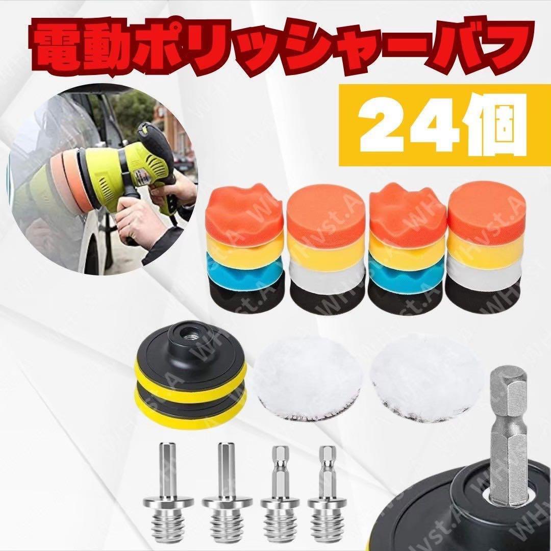 - 電動 ポリッシャー バフ 24点セット 車磨き インパクト ワックス 洗車 掃除