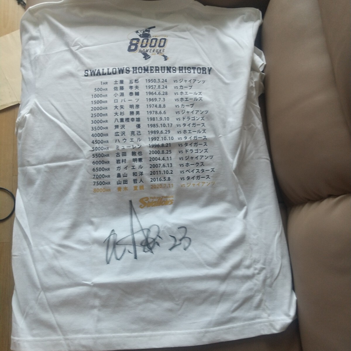 - 青木宣親直筆サイン入り ヤクルトスワローズ8000号ホームラン記念Tシャツ