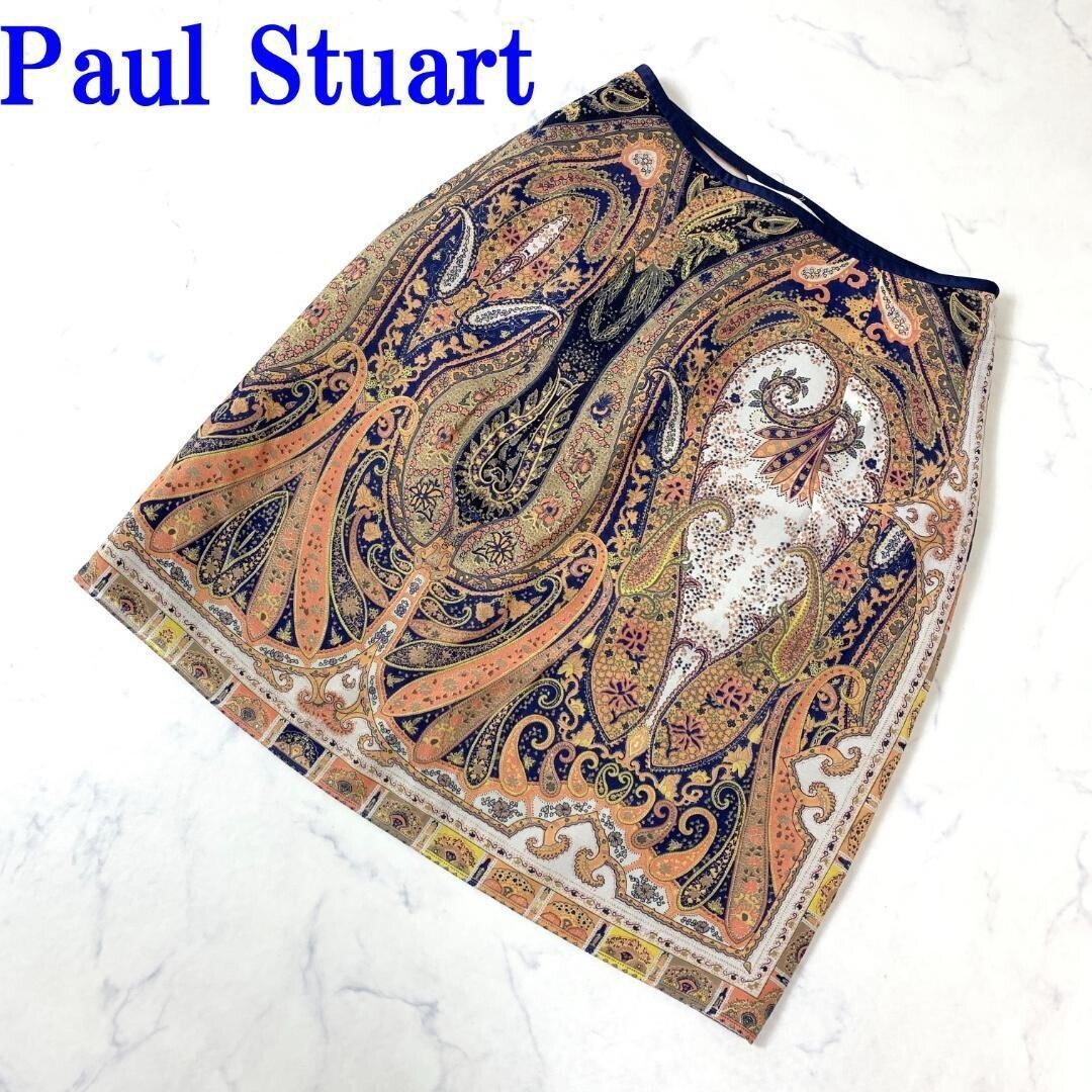 - ポールスチュアート スカート ネイビー Paul Stuart 幾何学模様 ペイズリー 紺色 綿100%コットン100% 8 C3427