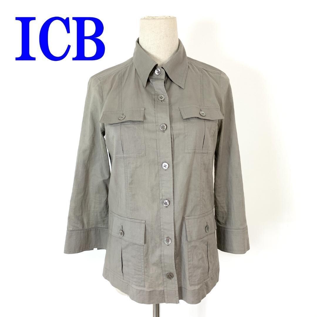 - ICB アイシービー 七分袖シャツ カーキ コットン袖丈調節可能 五分袖 ブラウン リネン 6 C3829