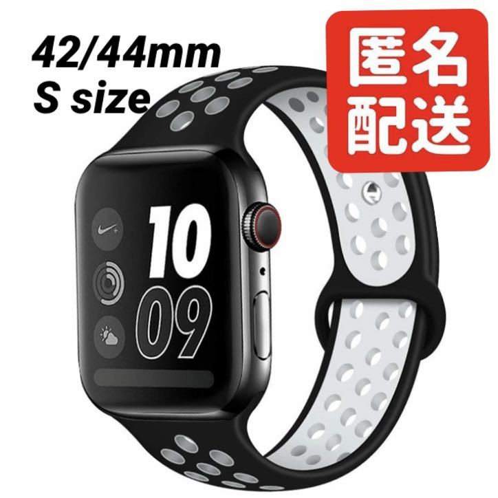 - Apple Watch アップルウォッチ スポーツバンド バンド ベルト ソフト シリコン 取り替え 42mm 44mm ブラック×ホワイト Sサイズ